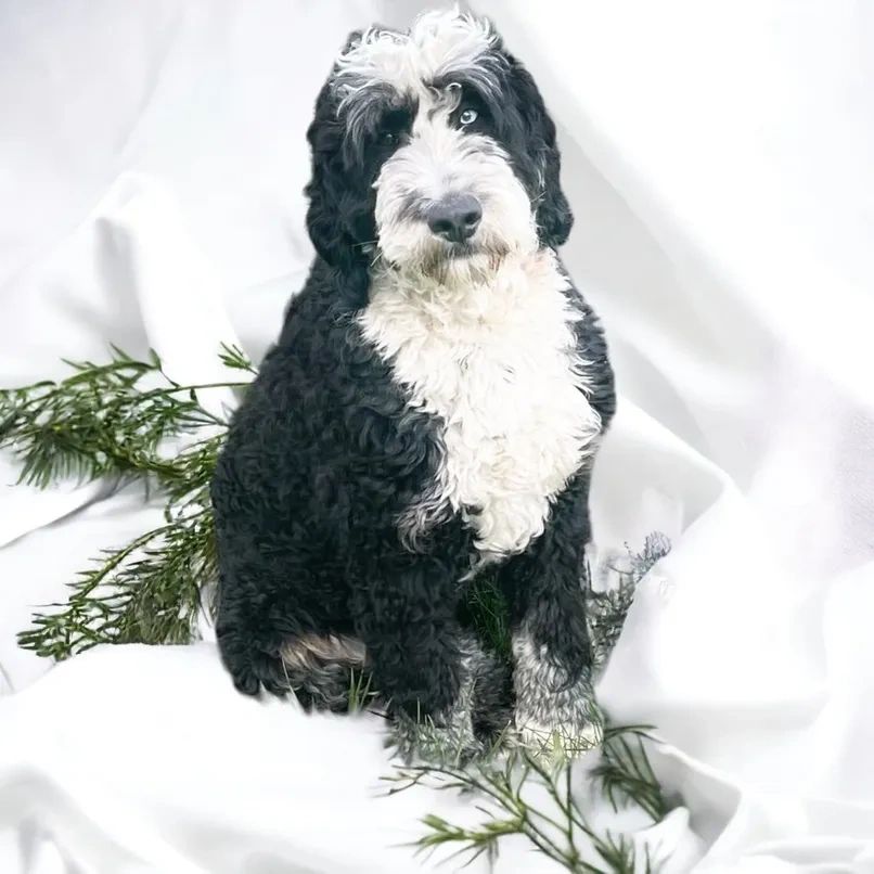 Jade is a F1 Bernedoodle. She weighs 65 lbs and loves to wrap her body and tail around you and give kisses!